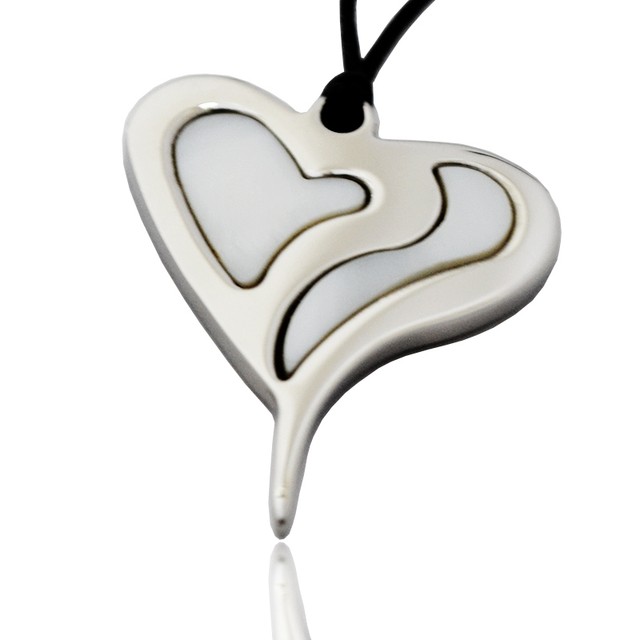 Ciondolo cuore stilizzato mm 37x31 in acciaio lucido con inserti in madreperla | eBay